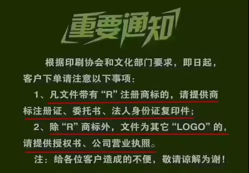 该政策已在义乌实施,下一步推广至全国,为了保护您的权益及利益,请您配合提供印前所需的所有资质!